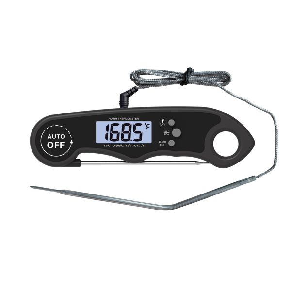 1.Come with two probe for choice, rotation probe is for meat, wire probe is for grill